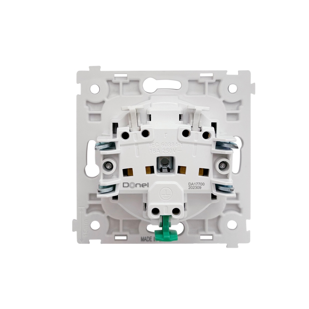 Розетка встраиваемая Donel R98 Schuko с крышкой и заземлением на клеммах Белый матовый DA17700-DA45433