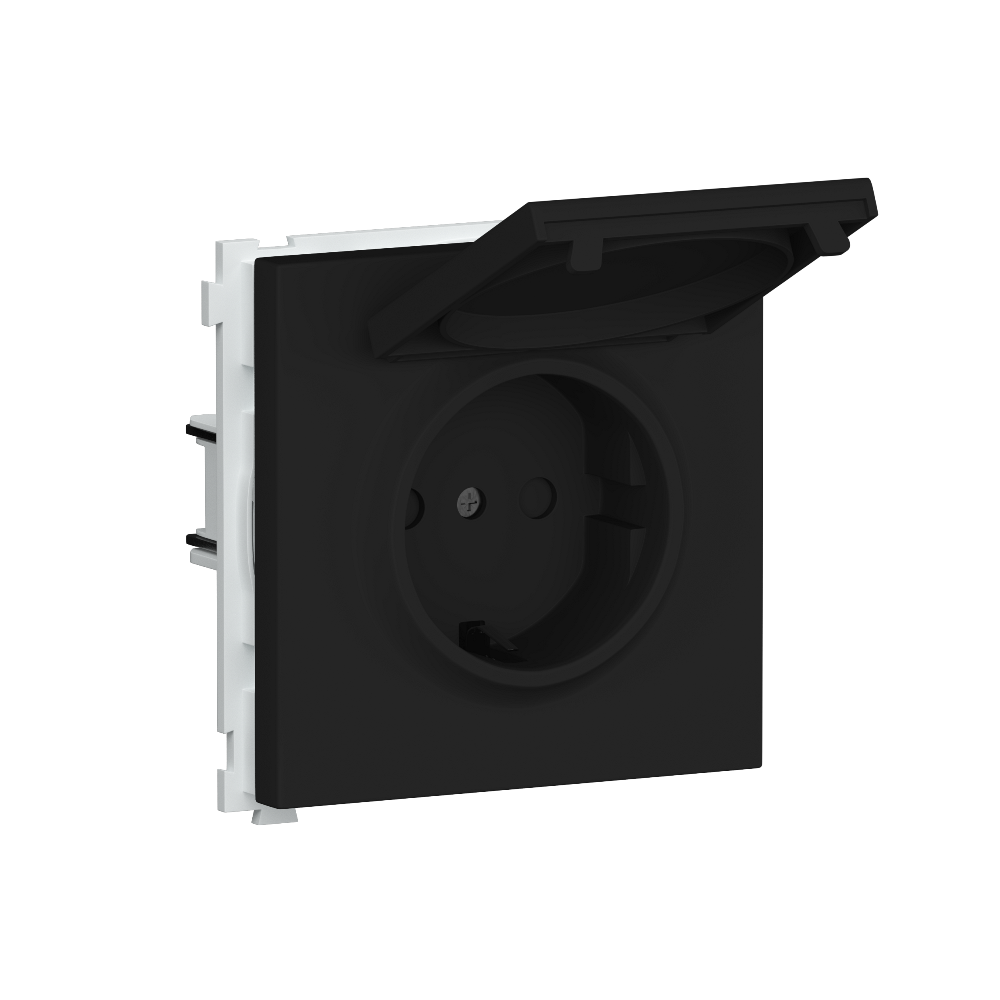 Розетка встраиваемая Donel R98 Schuko с крышкой и заземлением на винтах Карбон матовый DA18800-DA45430