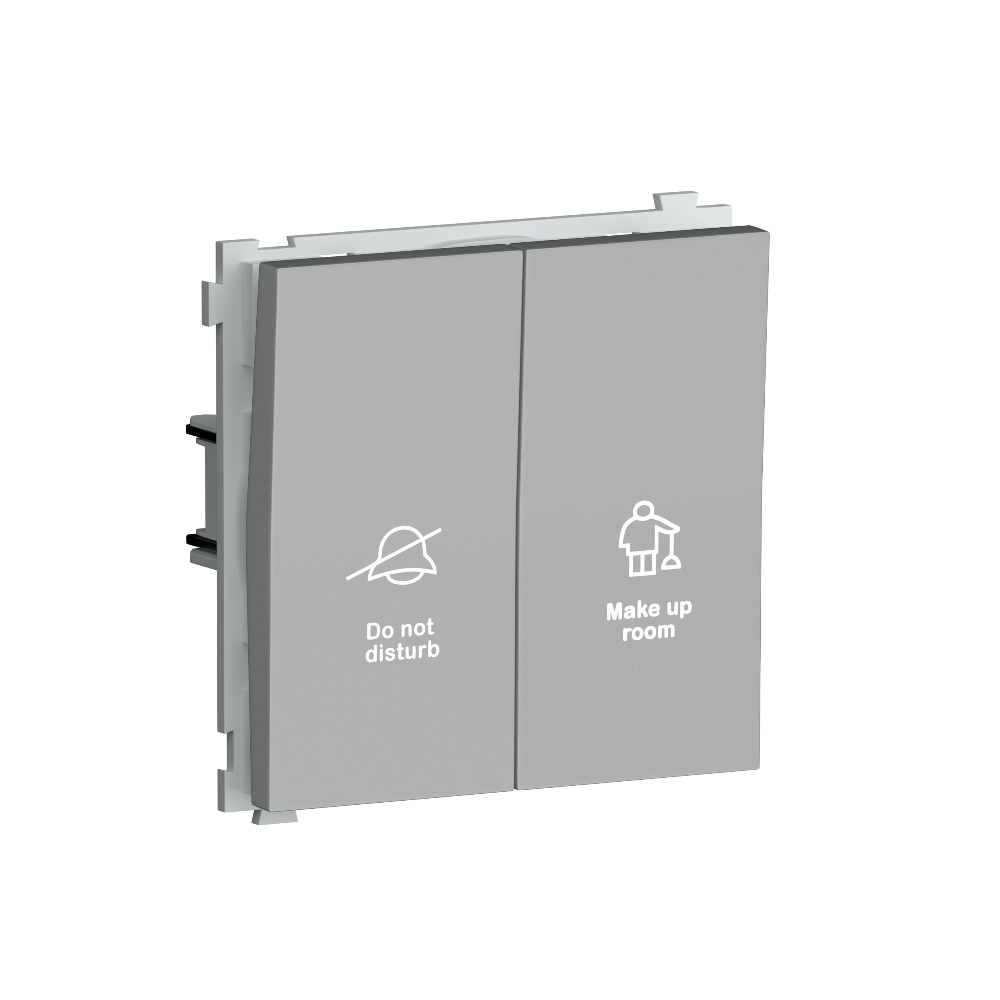 Выключатель двухклавишный встраиваемый Donel R98 с символами DND/MUR Алюминий матовый DA25800-DA88826
